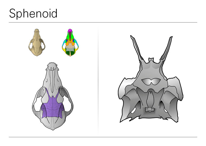 The images are part of a commissioned work for a workshop about veterinary Osteopathy. A medical field quite undiscovered for animals. These illustrations were done superviced by a human osteopath. The illustration show the different bones of a dog scull and the connections to the other bones. This can be understood as some kind of map for the veterinarian.