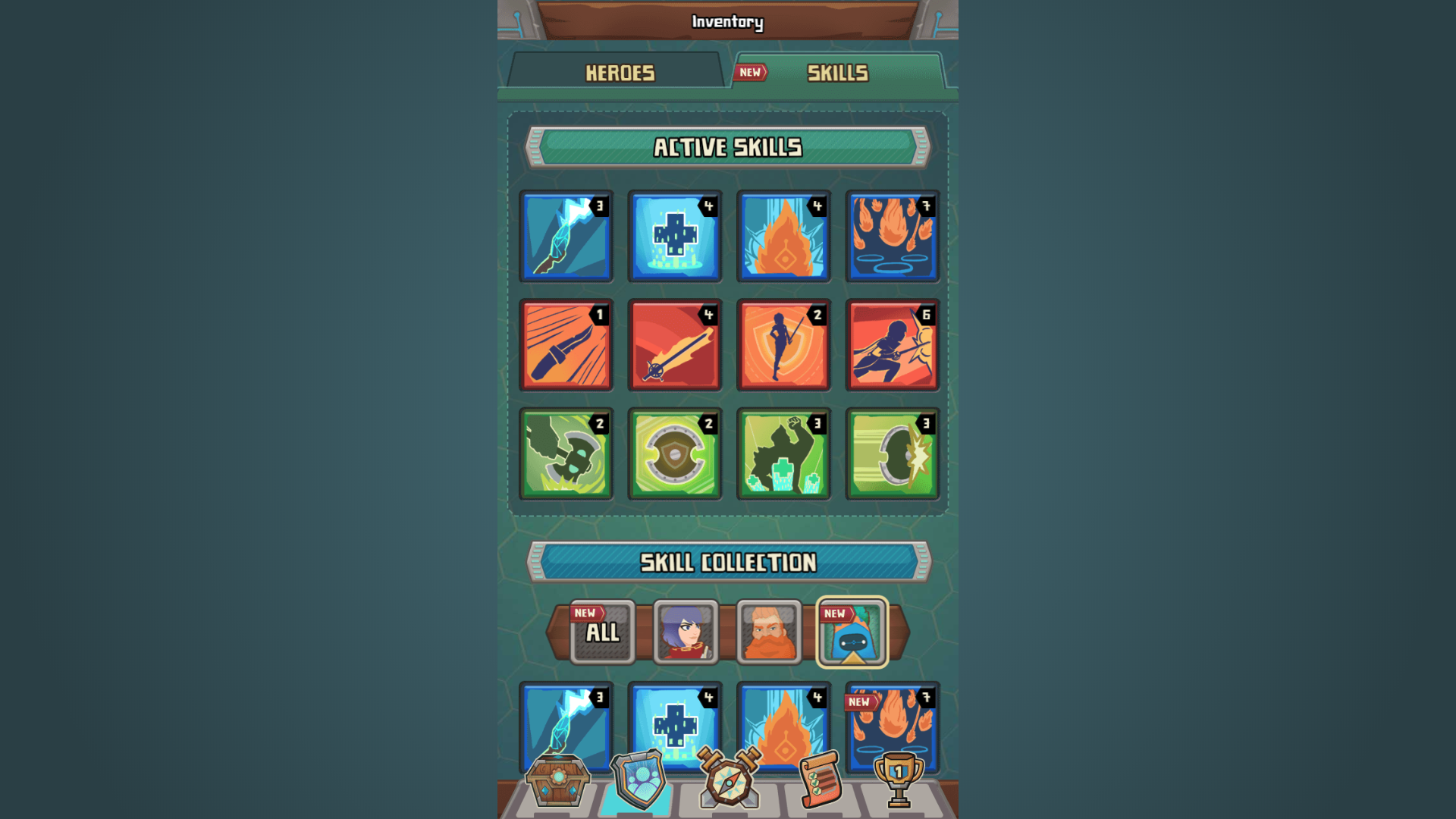 Basic gameplay mechanic illustrating how deckbuilding of active skills and passive bonuses unfolds during the battle phase.
